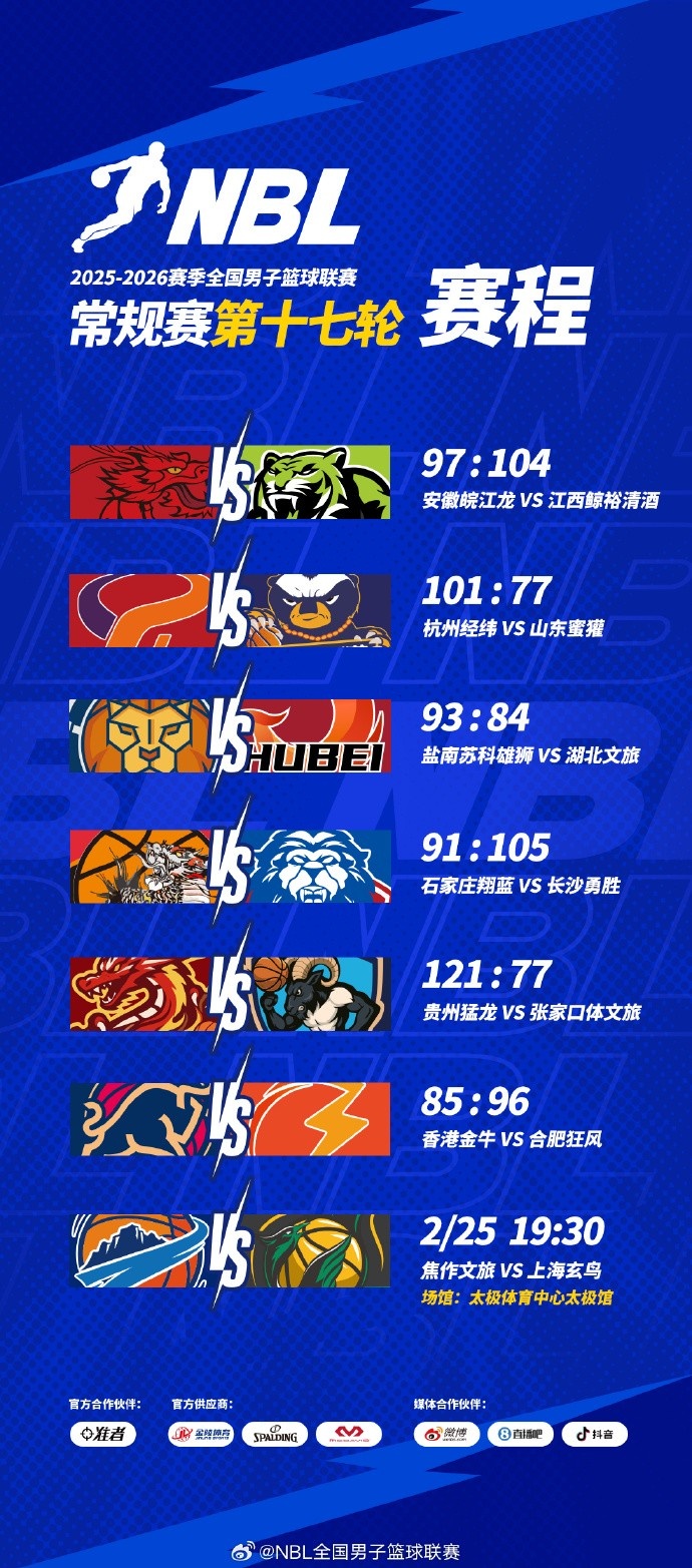 NBL通例赛第十七轮国法了第二天的较量,今天还将进行一场比赛!美洲杯买球体育信息