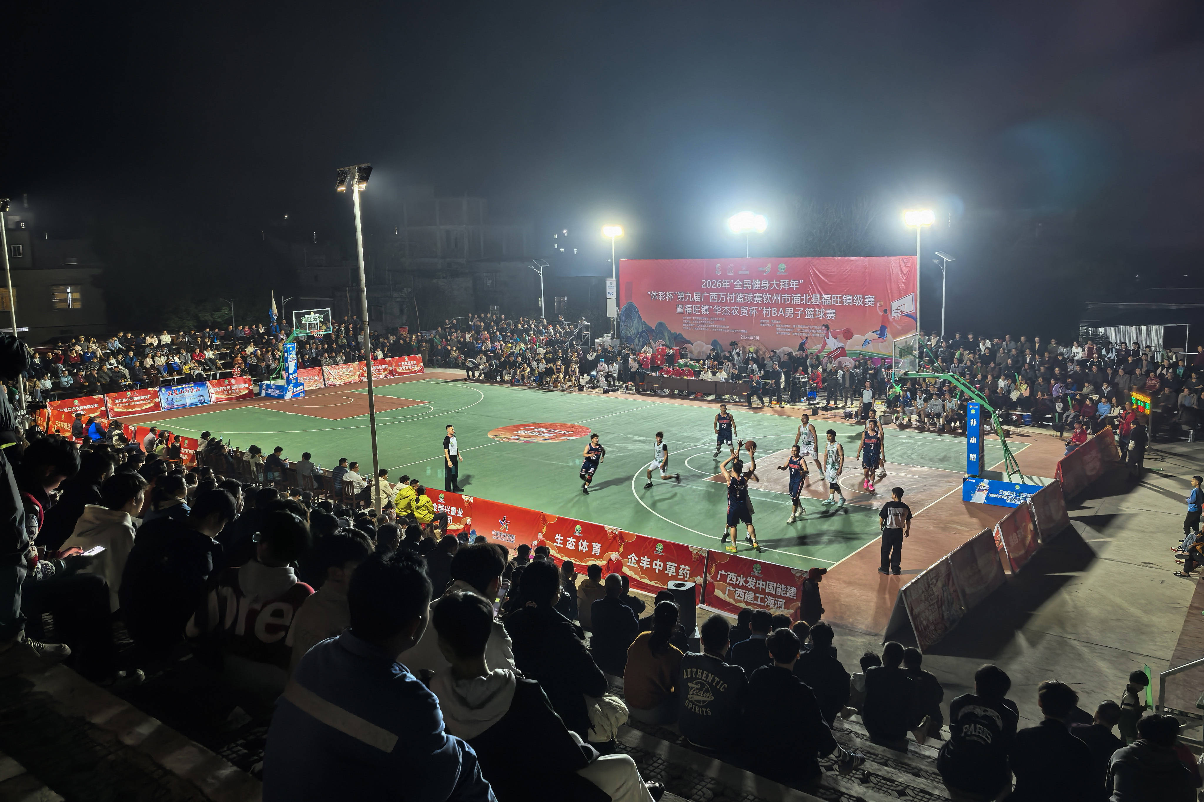↑图为浦北县福旺镇篮球赛现场。万村篮球赛举办技术