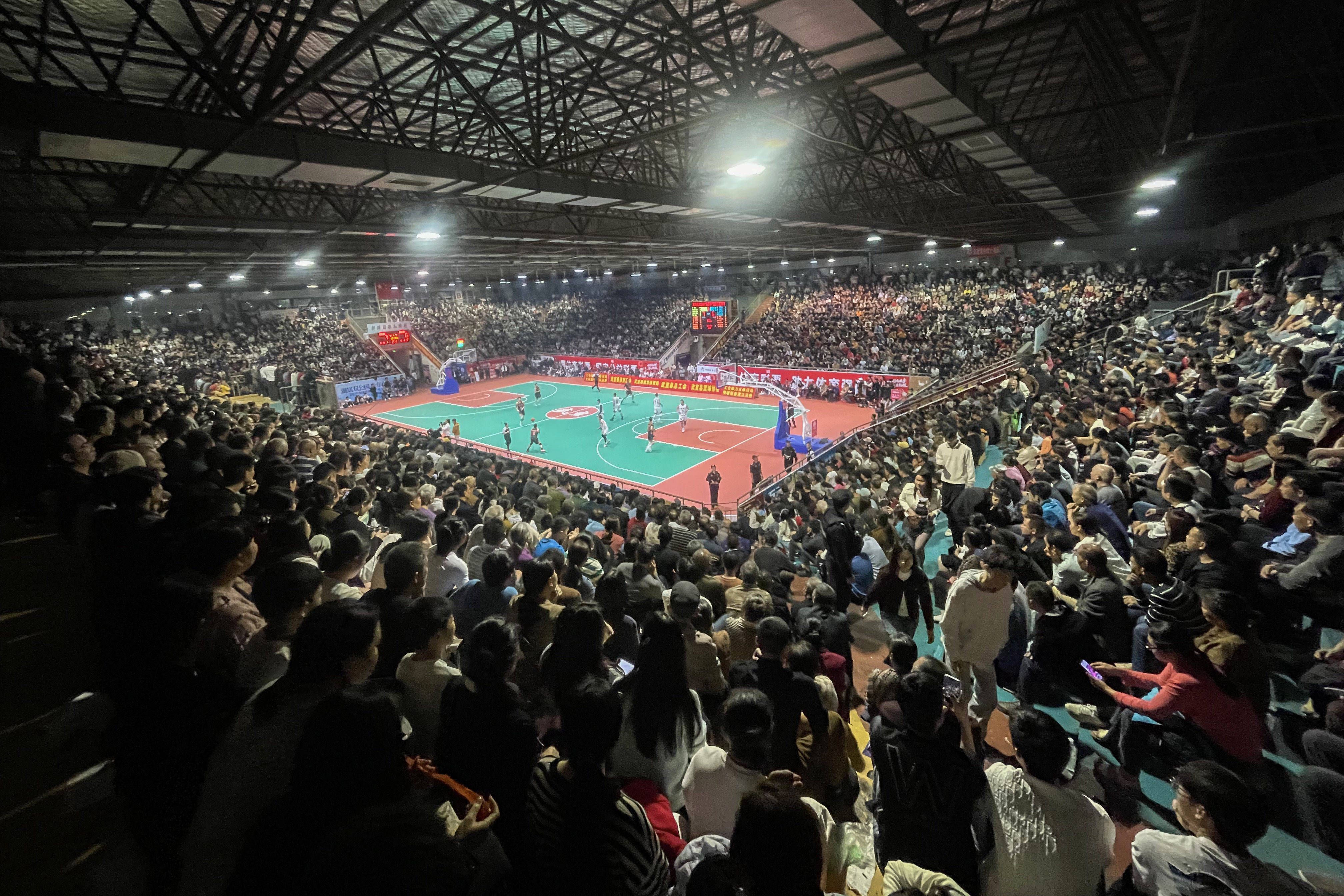 ↑大众在斑山篮球场不雅赛。原则上整个赛事分为