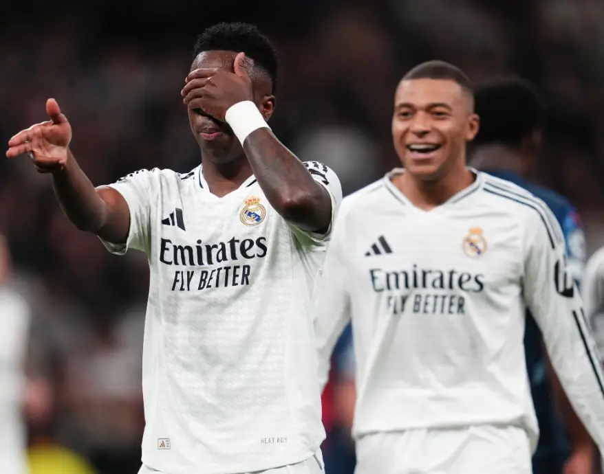 皇马(4231):库尔图瓦/阿诺德、米利唐、赫伊森、卡雷拉斯/琼阿梅尼、巴尔韦德/居勒尔、贝林厄姆、维尼修斯/姆巴佩体育录像/图片