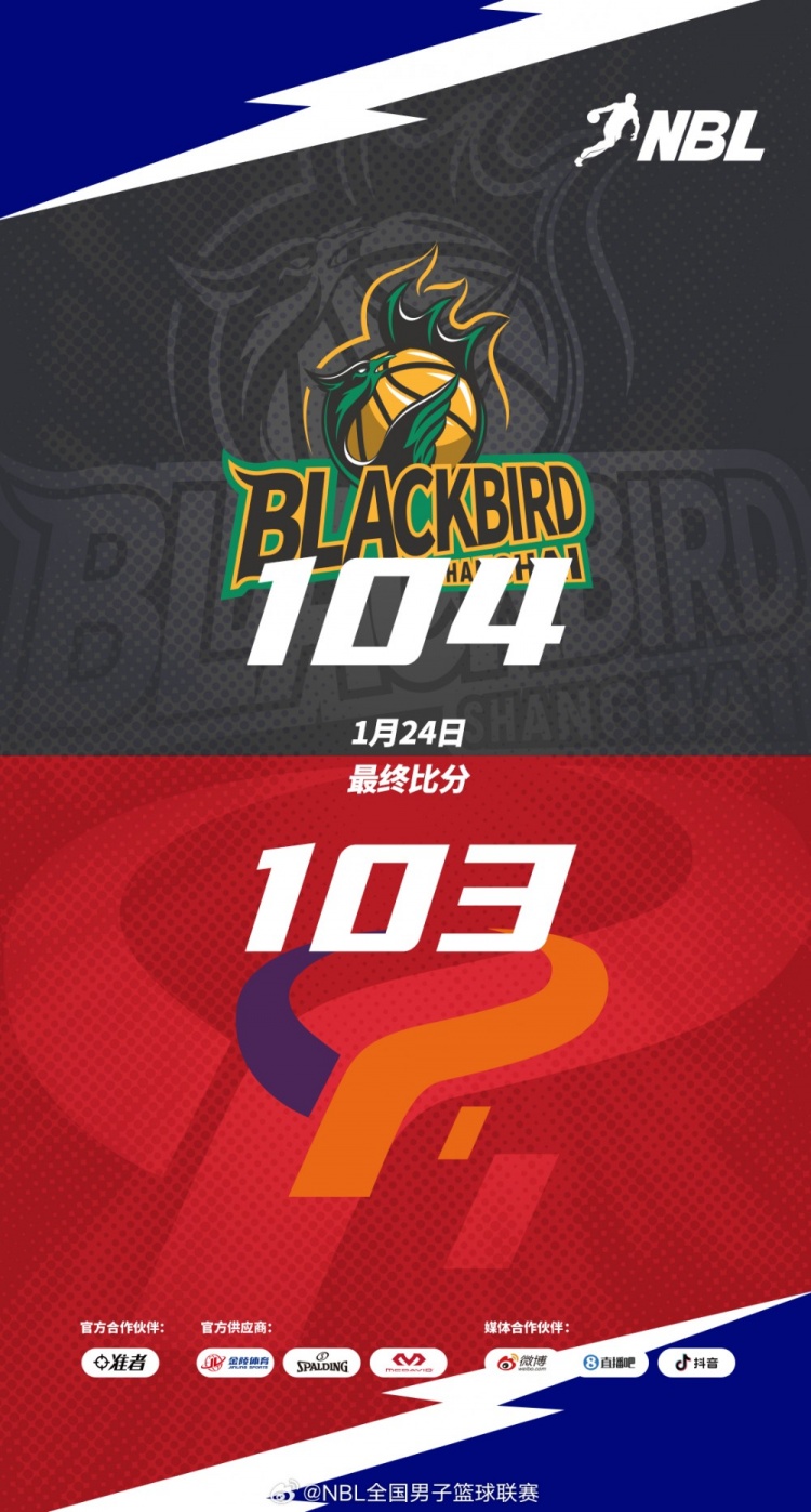 【战报】2025-2026赛季NBL联赛第10场焦点战:上海玄鸟主场与杭州经纬战至加时,最终以104-103顺利。