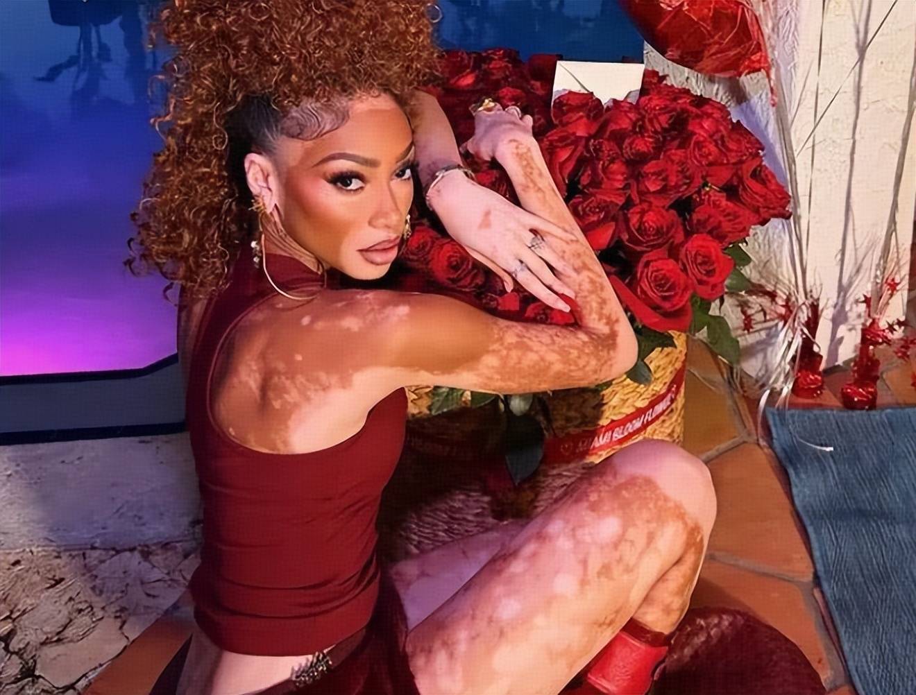 其实从这个特写相片也能看到,温妮哈洛的白癜风症状如故很严重的,身上各式白斑,满背齐是,之前更多是在她的脸上和大腿上看到,此次算是解锁“全新视角”!