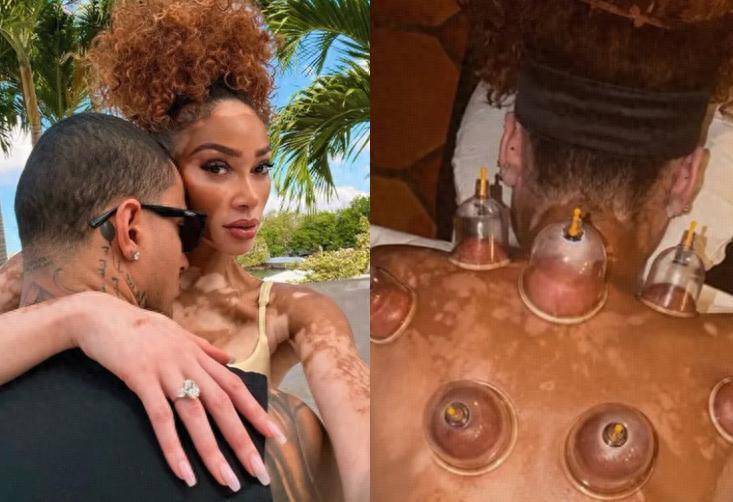 近日,NBA雄鹿队的球星凯尔-库兹马,带着只身妻温妮哈洛,又开启了新一轮度假旅程,他在个东谈主酬酢平台晒出了两东谈主度假的相片,只见,在海岛上,这位身患白癜风的超模,径直坐在库兹马的腿上,而况被牢牢抱着,画面相配温馨。道理的是,温妮哈洛还体验了来自一种“东方的机密力量”,那等于拔罐。